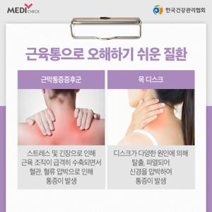 - 근막 통증 증후군: 특정 부위의 지속적인 통증. 흔히 '근육 뭉침'이라고 표현합니다.