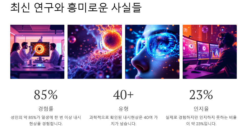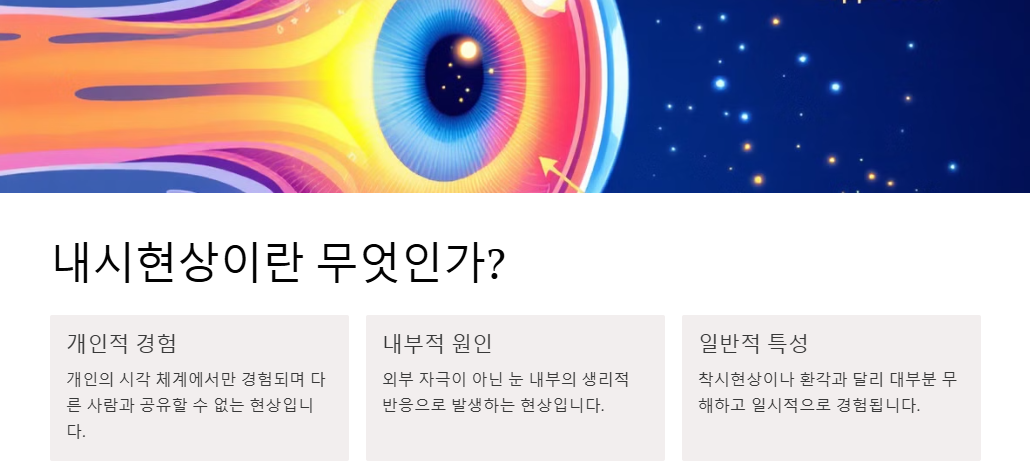 👁️🗨️ 세상을 담는 소중한 창, 우리의 눈! ✨ 그런데 가끔씩 우리 눈에만 보이는 신기한 현상들이 나타나 당황스러울 때가 있죠? 마치 눈 속에 작은 벌레🐛가 날아다니는 것 같기도 하고, 갑자기 빛⚡️이 번쩍이는 듯한 느낌이 들기도 하고, 🎨특이한 무늬가 보이는 경험, 바로 이 모든 것을 내시현상이라고 부릅니다!