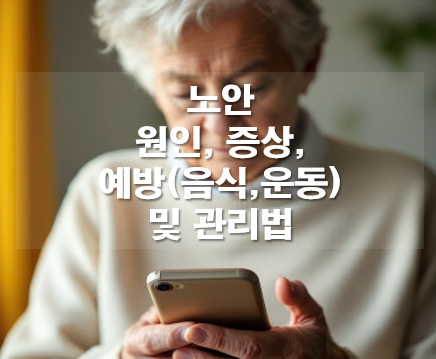 - 노안 예방을 위한 생활 습관은 무엇인가요? 정기적인 안과 검진, 자외선 차단, 적절한 습도 유지, 금연 등이 중요합니다.