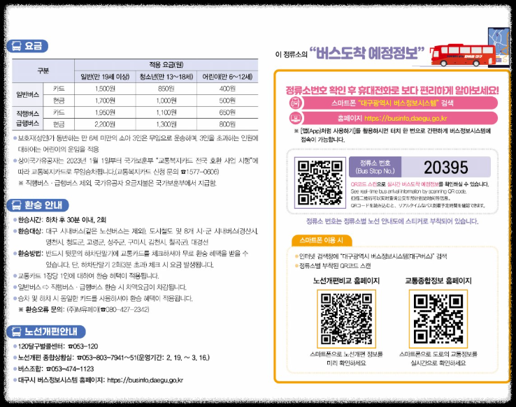 - 직행2번: 국가산업단지~테크노폴리스~동대구역