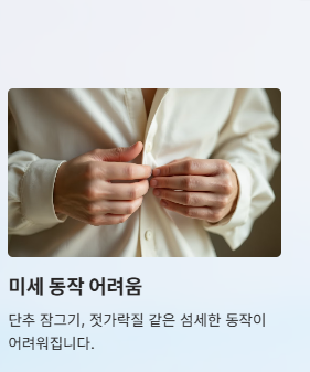 - 손이나 발의 근력 저하 – 물건을 자주 떨어뜨리거나 계단 오르내리기가 힘들어집니다.