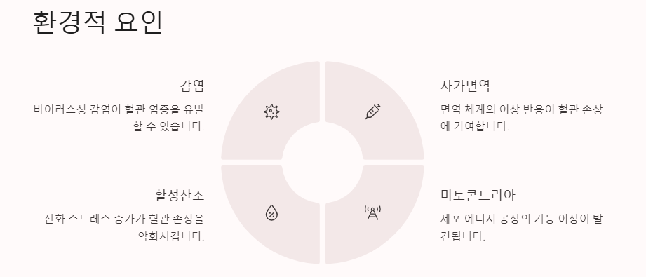 - 기타: 미토콘드리아 이상과 활성산소 증가도 원인으로 제시되고 있습니다.