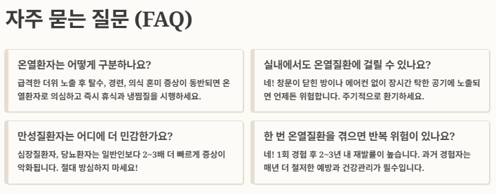 A6. ‘평소보다 2배 수분 섭취+최고온도 외출자제’ 강추! - Q7. 한 번 온열질환을 겪으면 반복 위험 있나요?