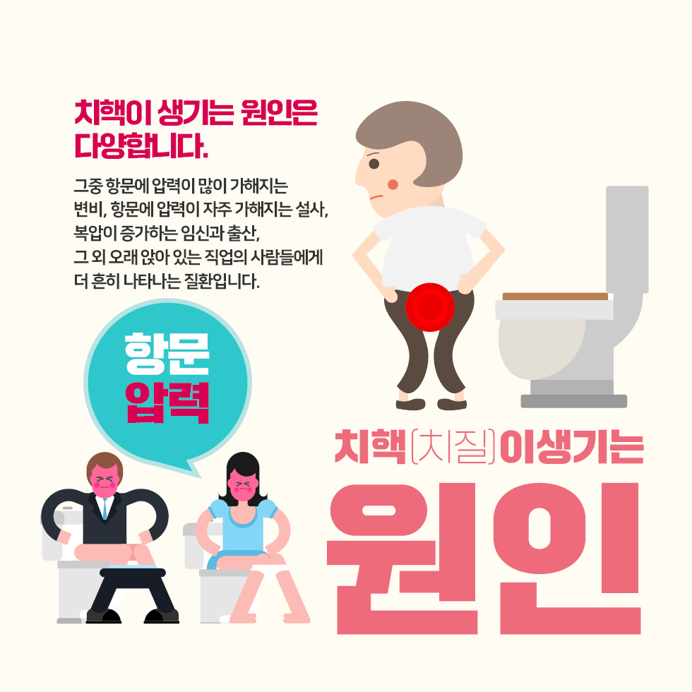 치질은 단순히 운이 나빠서 걸리는 병이 아닙니다. 우리의 일상 속 작은 습관들이 모여 치질을 유발할 수 있으며 주요 원인으로 다음과 같은 것들이 있습니다.😱
